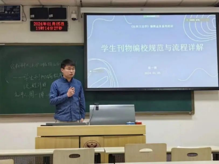 图2 杂志社指导老师方军副教授在编辑部培训会上发言