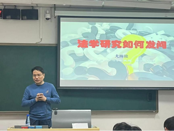 2024年3月27日晚,中国人民大学法学院尤陈俊教授应我校法学院及新时代法治创新高等研究院邀请,到我校主讲题为“法学研究如何发问”的学术讲座。本次讲座由我校副校长(挂职)王启梁教授担任与谈嘉宾,法学院副院长柳建龙教授担任主持人。