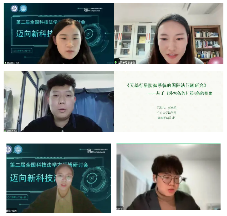第四单元以“算法、平台与未来”为主题,深入探讨了算法透明与合规审计、数字时代工作时间制度、雇主情感计算应用下的劳动者保护、天基行星防御系统的国际法问题、飞行汽车法律属性及其侵权责任,以及人类生殖系基因编辑的风险与治理等前沿议题。在主题发言环节,中国政法大学数据法治研究院博士研究生于琳、上海财经大学法学院博士研究生钟念珈、东南大学法学院博士研究生孙宇、中山大学法学院博士研究生赵东苑、西南政法大学民商法学院硕士研究生张洁、北京大学法学院博士研究生何易平等六位学者依次进行了精彩发言。他们分别从不同角度对算法、平台及未来科技发展的法律问题进行了深入剖析,并提出了具有前瞻性的见解和建议。《探索与争鸣》编辑孙冠豪、《网络法律评论》编辑辜凌云两位专家对参会论文进行了细致的剖析与点评,并为论文作者提供了极具价值的改进建议。本单元由中国社会科学院大学法学院副院长、副教授苗鸣宇主持,促进与引导了富有活力的讨论过程。